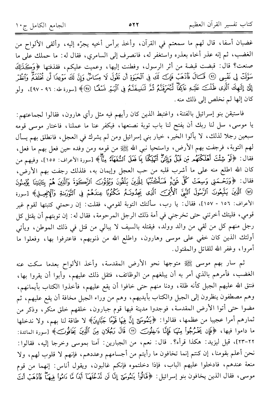 فاستيقن بنو إسرائيل بالفتنة، واغتبط الذين كان رأيهم فيه مثل رأي هارون، فقالوا لجماعتهم: يا موسى، سل لنا ربك أن يفتح لنا باب توبة نصنعها، فيكفر عنا ما عملنا، فاختار موسى قومه سبعين رجلا لذلك، لا يألوا الخير، خيار بني إسرائيل ومن لم يشرك في العجل، فانطلق بهم يسأل لهم التوبة، فرجفت بهم الأرض، واستحيا نبي الله - صلى الله عليه وسلم - من قومه ومن وفده حين فعل بهم ما فعل، فقال: {لَوْ شِئْتَ أَهْلَكْتَهُمْ مِنْ قَبْلُ وَإِيَّايَ أَتُهْلِكُنَا بِمَا فَعَلَ السُّفَهَاءُ مِنَّا} [سورة الأعراف: ١٥٥]، وفيهم من كان الله اطلع منه على ما أشرب قلبه من حب العجل وإيمان به، فلذلك رجفت بهم الأرض، فقال: {وَرَحْمَتِي وَسِعَتْ كُلَّ شَيْءٍ فَسَأَكْتُبُهَا لِلَّذِينَ يَتَّقُونَ وَيُؤْتُونَ الزَّكَاةَ وَالَّذِينَ هُمْ بِآيَاتِنَا يُؤْمِنُونَ (١٥٦) الَّذِينَ يَتَّبِعُونَ الرَّسُولَ النَّبِيَّ الْأُمِّيَّ الَّذِي يَجِدُونَهُ مَكْتُوبًا عِنْدَهُمْ فِي التَّوْرَاةِ وَالْإِنْجِيلِ} [سورة الأعراف: ١٥٦، ١٥٧]، فقال: يا رب، سألتك التوبة لقومي، فقلت: إن رحمتي كتبتها لقوم غير قومي، فليتك أخرتني حتى تخرجني في أمة ذلك الرجل المرحومة، فقال له: إن توبتهم أن يقتل كل رجل منهم كل من لقي من والد وولد، فيقتله بالسيف لا يبالي من قتل في ذلك الموطن، ويأتي أولئك الذين كان خفي على موسى وهارون، واطلع الله من ذنوبهم، فاعترفوا بها، وفعلوا ما أمروا، وغفر الله للقاتل والمقتول.