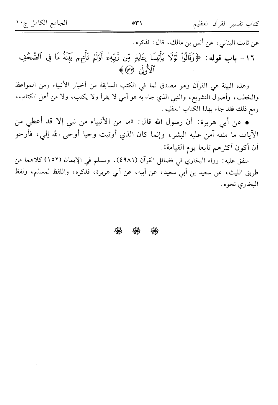 ١٦ - باب قوله: {وَقَالُوا لَوْلَا يَأْتِينَا بِآيَةٍ مِنْ رَبِّهِ أَوَلَمْ تَأْتِهِمْ بَيِّنَةُ مَا فِي الصُّحُفِ الْأُولَى (١٣٣)}