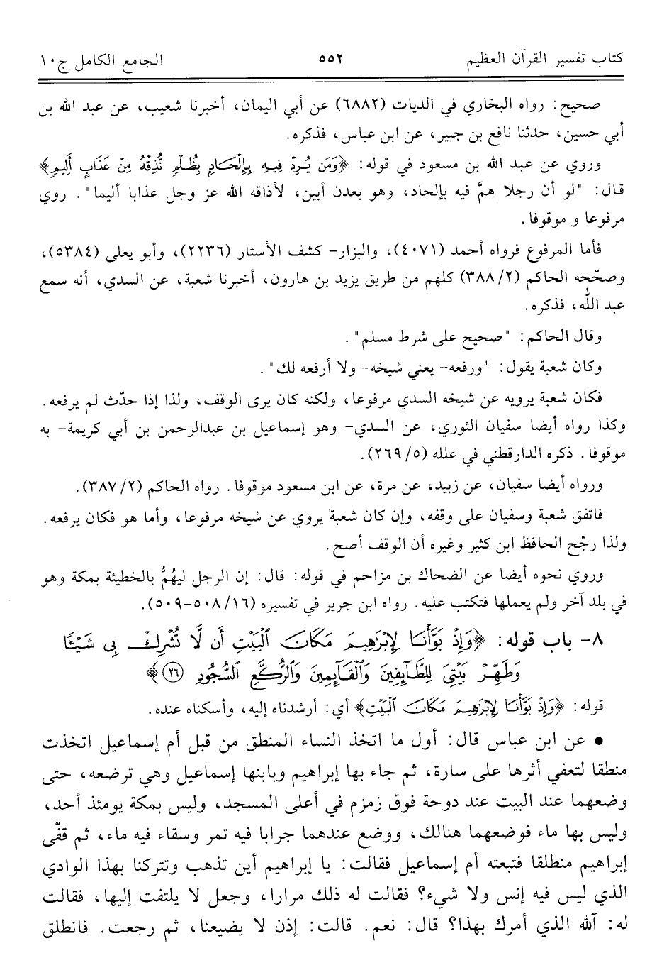 وروي عن عبد الله بن مسعود في قوله: {وَمَنْ يُرِدْ فِيهِ بِإِلْحَادٍ بِظُلْمٍ نُذِقْهُ مِنْ عَذَابٍ أَلِيمٍ} قال: "لو أن رجلا همَّ فيه بإلحاد، وهو بعدن أبين، لأذاقه الله عز وجل عذابا أليما". روي مرفوعا وموقوفا.