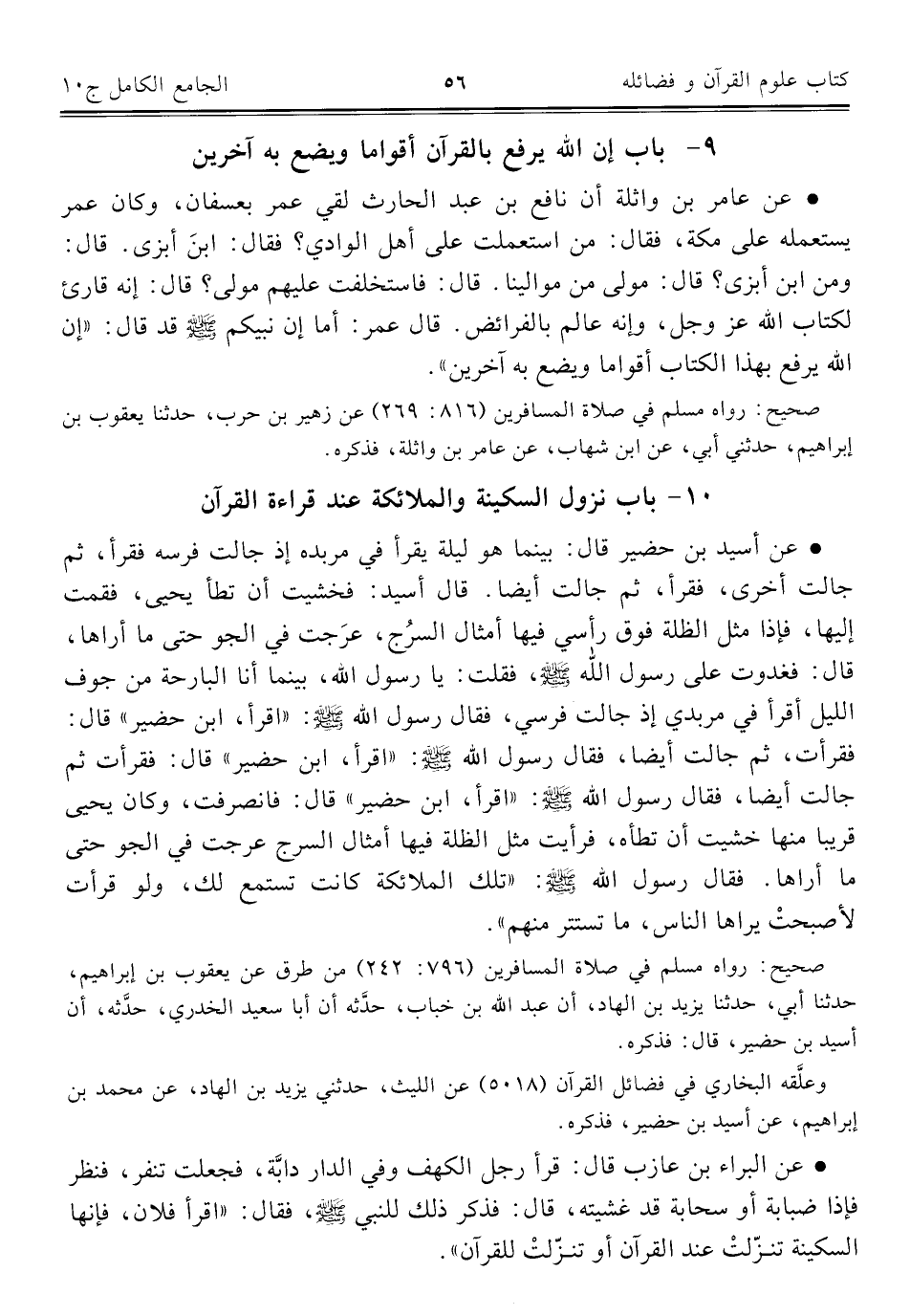 ٩ - باب إن اللَّه يرفع بالقرآن أقواما ويضع به آخرين