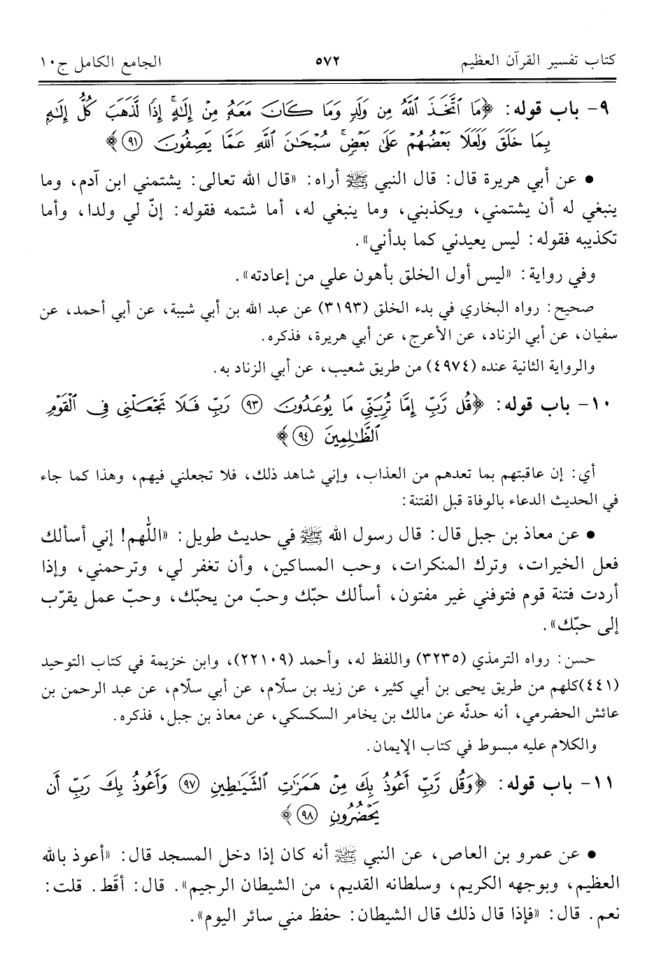 كتاب الجامع الكامل في الحديث الصحيح الشامل المرتب على أبواب الفقه (اسم الجزء: 10)