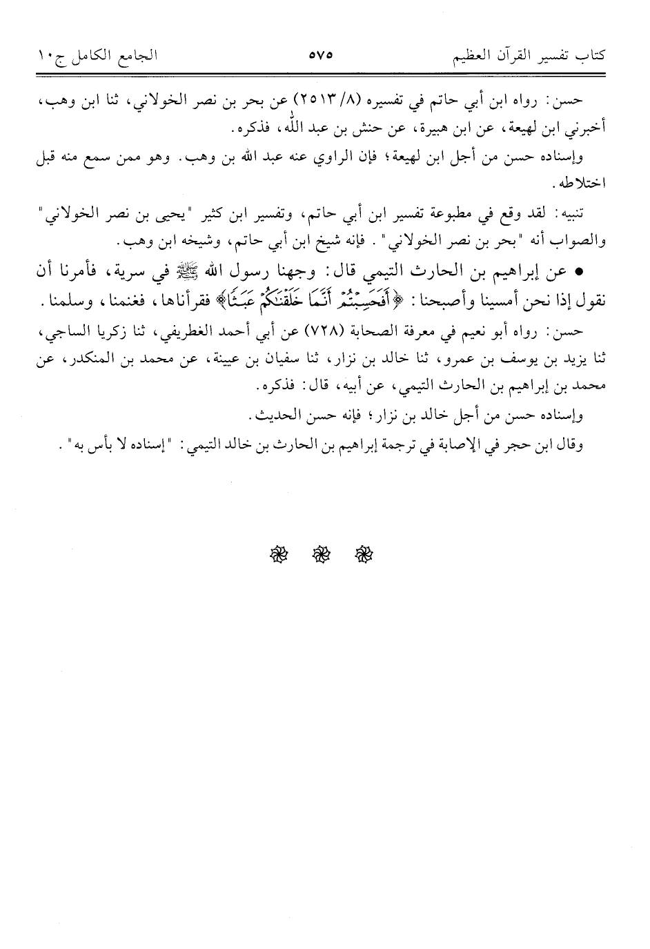 تنبيه: لقد وقع في مطبوعة تفسير ابن أبي حاتم، وتفسير ابن كثير "يحيى بن نصر الخولاني" والصواب أنه "بحر بن نصر الخولاني". فإنه شيخ ابن أبي حاتم، وشيخه ابن وهب.