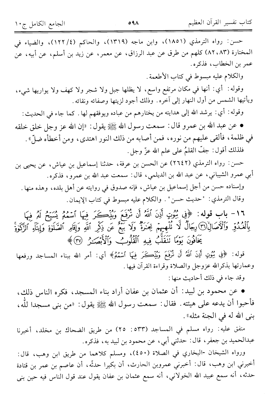 قوله: {فِي بُيُوتٍ أَذِنَ اللَّهُ أَنْ تُرْفَعَ وَيُذْكَرَ فِيهَا اسْمُهُ} أي: أمر الله ببناء المساجد ورفعها وعمارتها بذكر الله عز وجل والصلاة وقراءة القرآن فيها.