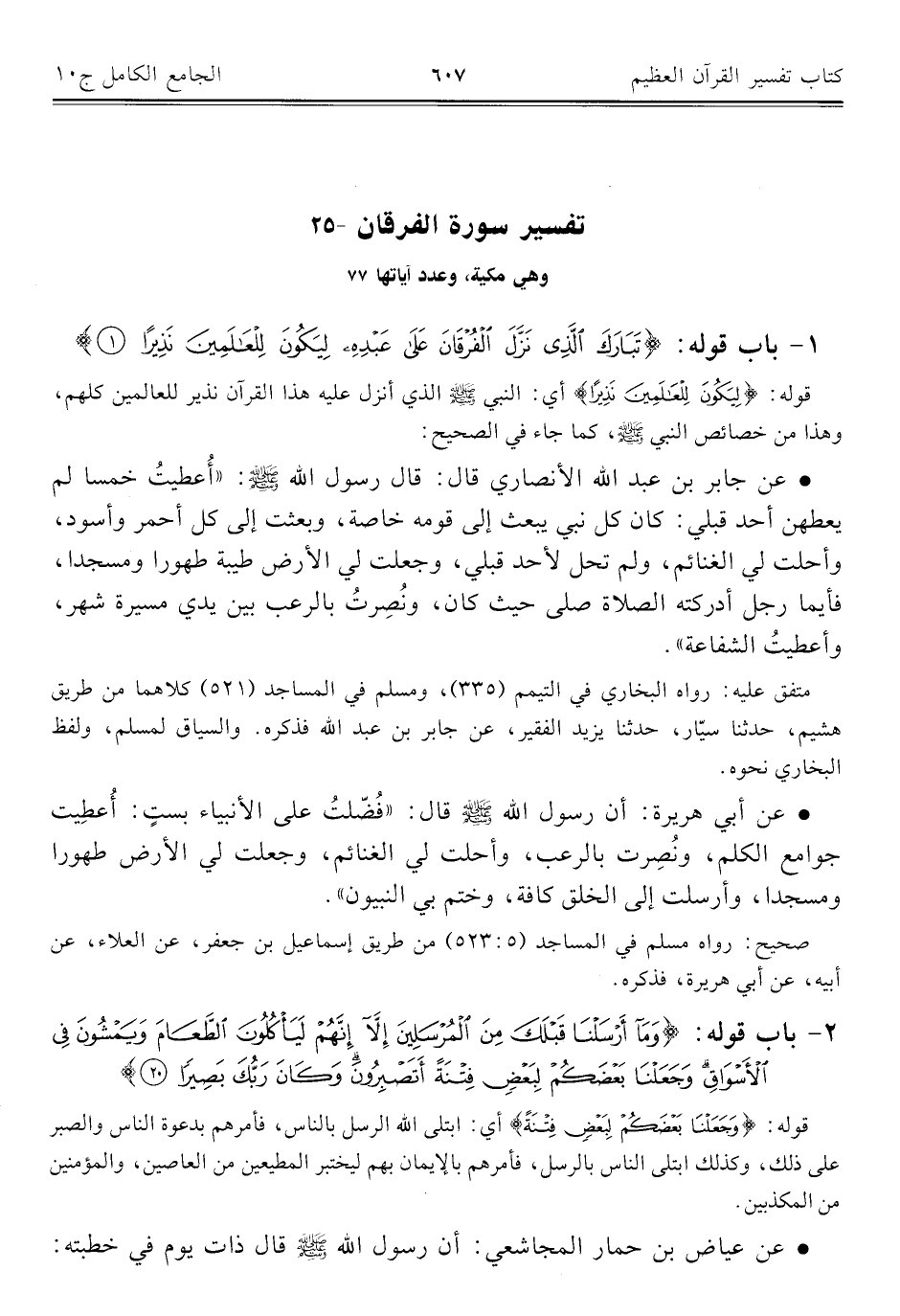 ٢٥ - تفسير سورة الفرقان وهي مكية، وعدد آياتها ٧٧