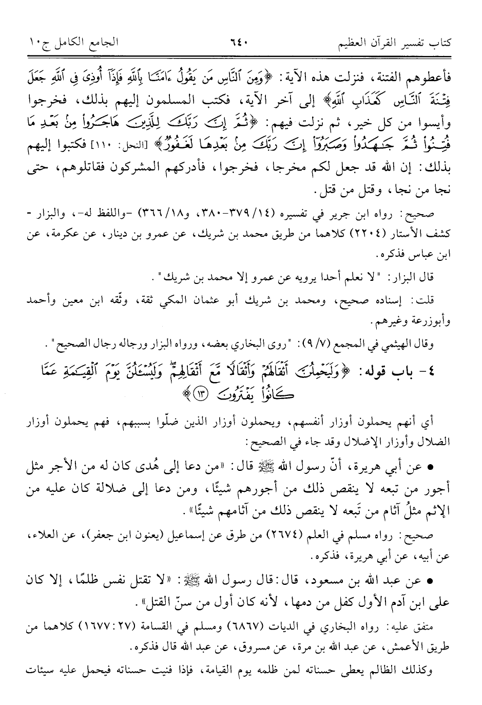كتاب الجامع الكامل في الحديث الصحيح الشامل المرتب على أبواب الفقه (اسم الجزء: 10)