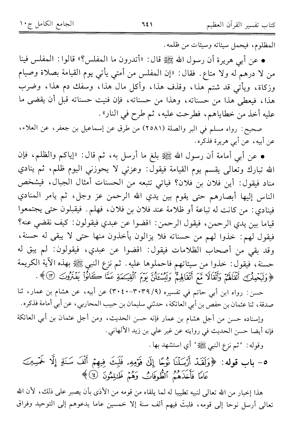 كتاب الجامع الكامل في الحديث الصحيح الشامل المرتب على أبواب الفقه (اسم الجزء: 10)