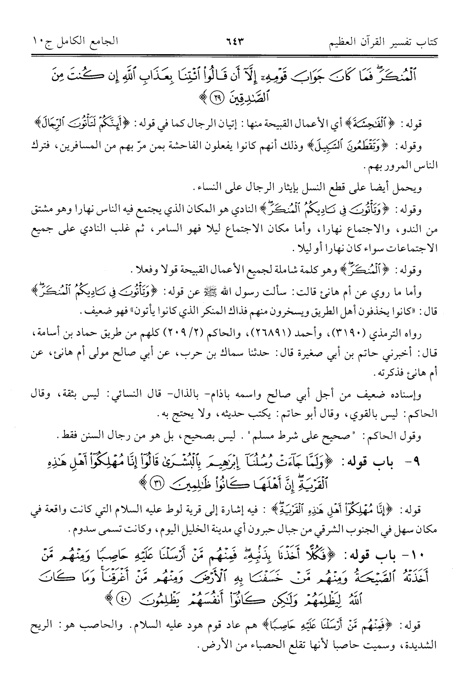 الْمُنْكَرَ فَمَا كَانَ جَوَابَ قَوْمِهِ إِلَّا أَنْ قَالُوا ائْتِنَا بِعَذَابِ اللَّهِ إِنْ كُنْتَ مِنَ الصَّادِقِينَ (٢٩)}
