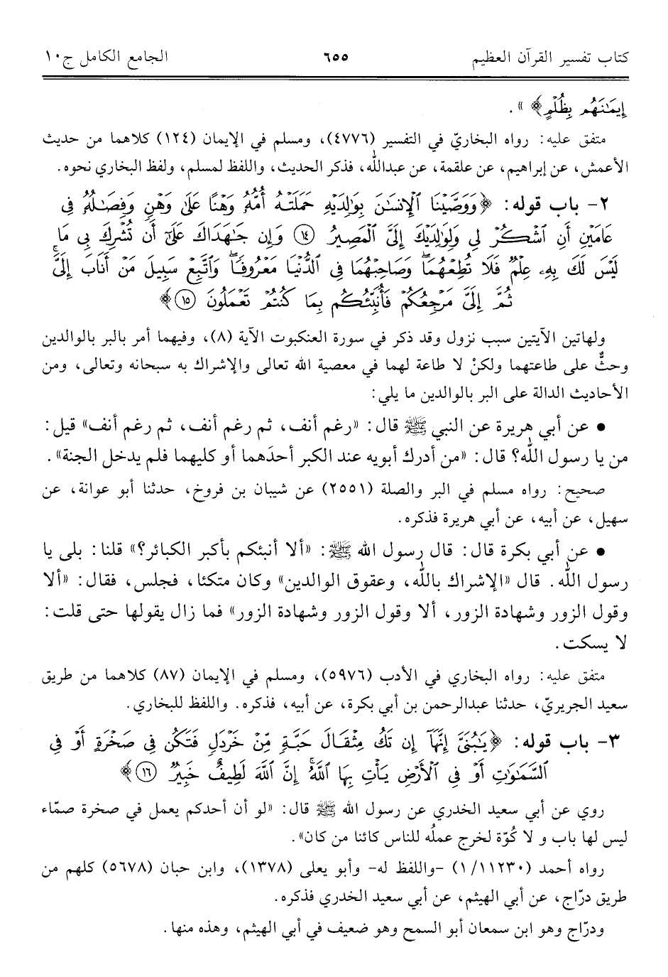٣ - باب قوله: {يَابُنَيَّ إِنَّهَا إِنْ تَكُ مِثْقَالَ حَبَّةٍ مِنْ خَرْدَلٍ فَتَكُنْ فِي صَخْرَةٍ أَوْ فِي السَّمَاوَاتِ أَوْ فِي الْأَرْضِ يَأْتِ بِهَا اللَّهُ إِنَّ اللَّهَ لَطِيفٌ خَبِيرٌ (١٦)}