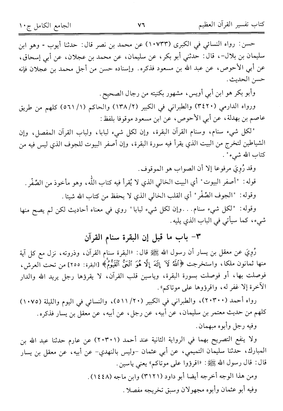 ٣ - باب ما قيل إن البقرة سنام القرآن