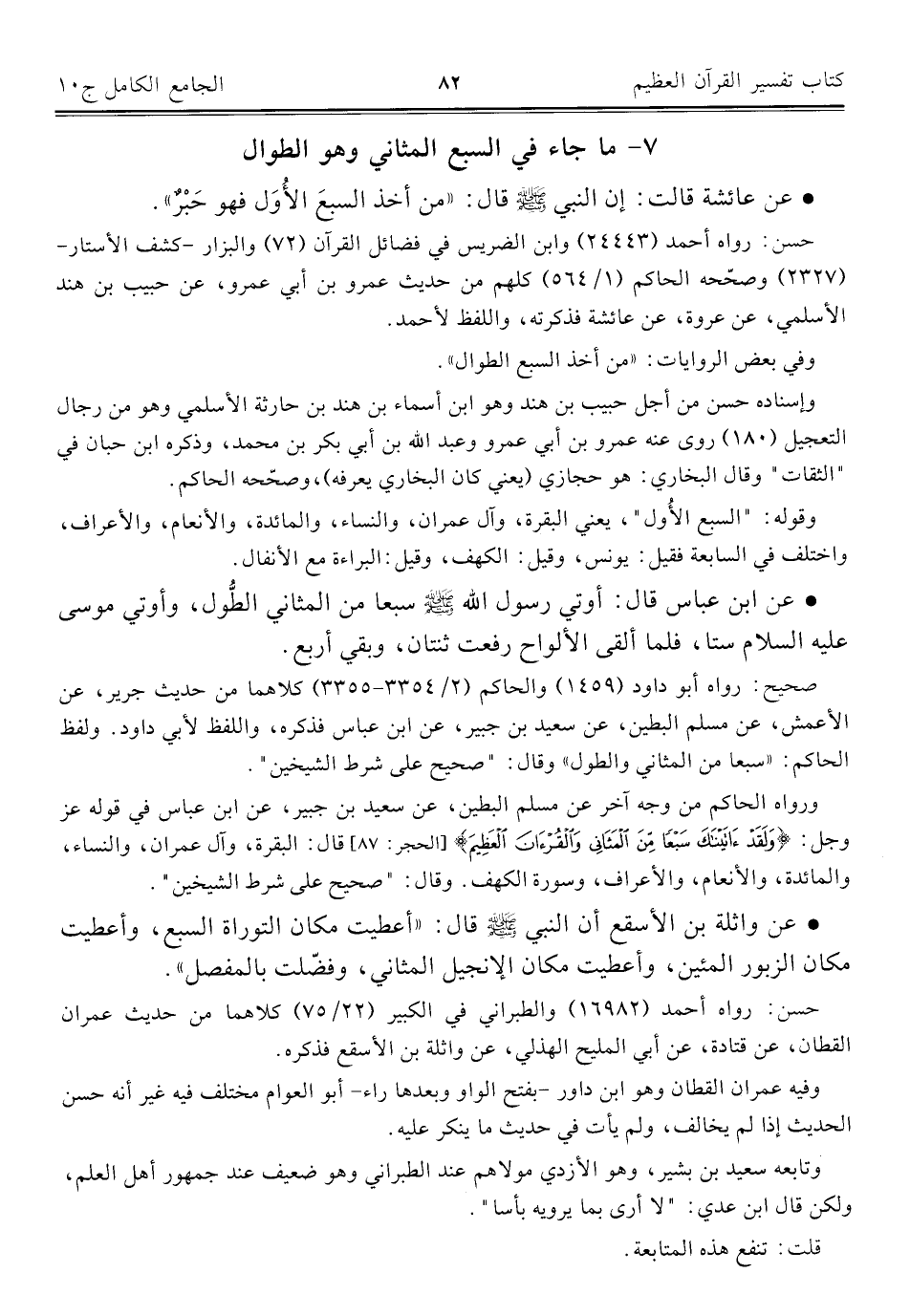 ٧ - ما جاء في السبع المثاني وهو الطوال