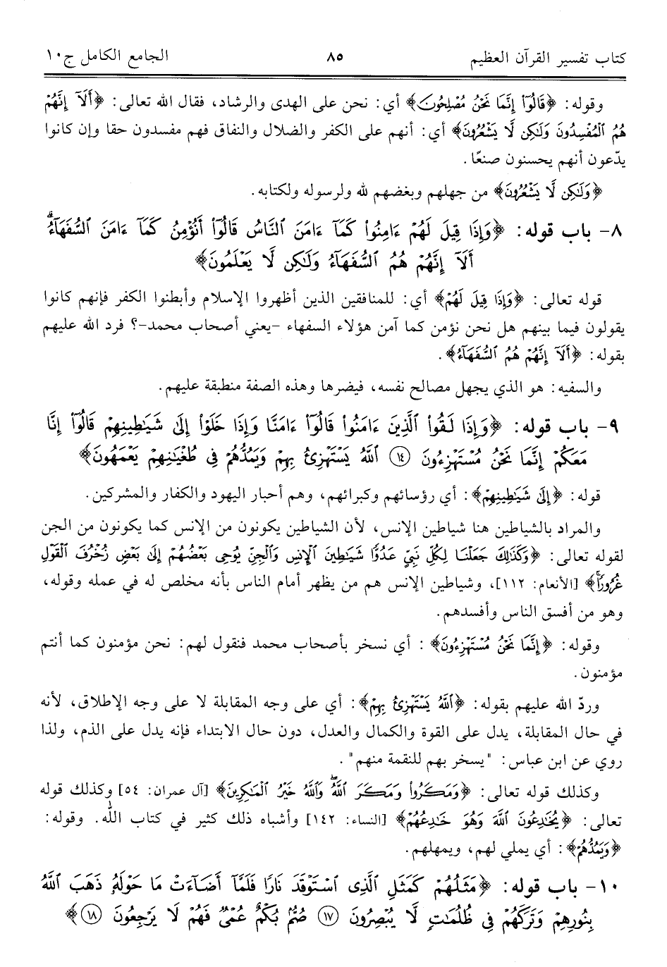 ٨ - باب قوله: {وَإِذَا قِيلَ لَهُمْ آمِنُوا كَمَا آمَنَ النَّاسُ قَالُوا أَنُؤْمِنُ كَمَا آمَنَ السُّفَهَاءُ أَلَا إِنَّهُمْ هُمُ السُّفَهَاءُ وَلَكِنْ لَا يَعْلَمُونَ}