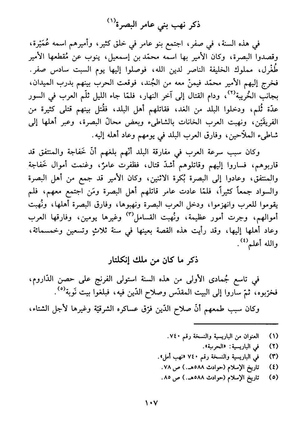 ذِكْرُ نَهْبِ بَنِي عَامِرٍ الْبَصْرَةَ