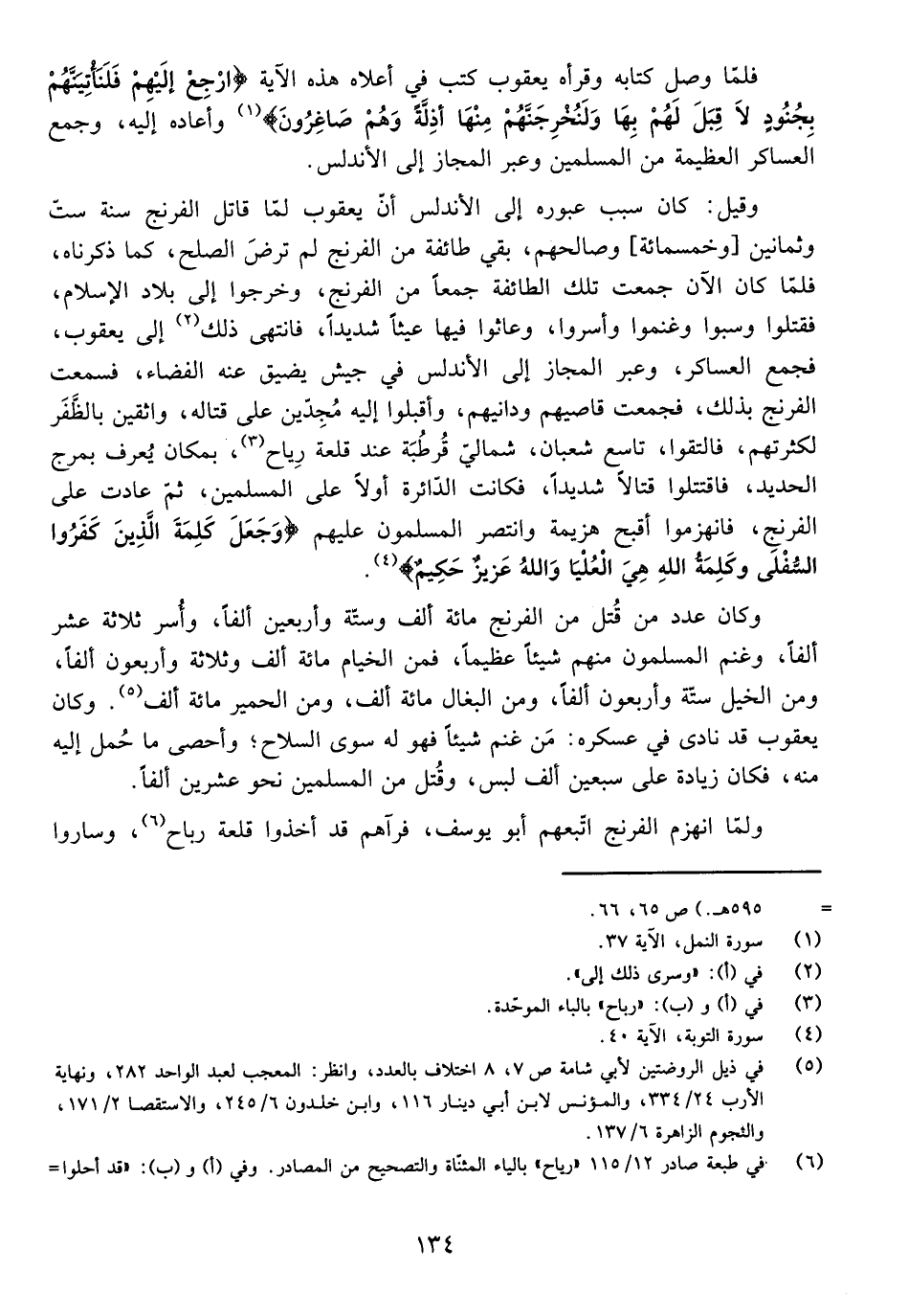 وَكَانَ عَدَدُ مَنْ قُتِلَ مِنَ الْفِرِنْجِ مِائَةَ أَلْفٍ وَسِتَّةً وَأَرْبَعِينَ أَلْفًا، وَأُسِرَ ثَلَاثَةَ عَشَرَ أَلْفًا، وَغَنِمَ الْمُسْلِمُونَ مِنْهُمْ شَيْئًا عَظِيمًا، فَمِنَ الْخِيَامِ مِائَةُ أَلْفٍ وَثَلَاثَةٌ وَأَرْبَعُونَ أَلْفًا، وَمِنَ الْخَيْلِ سِتَّةٌ وَأَرْبَعُونَ أَلْفًا، وَمِنَ الْبِغَالِ مِائَةُ أَلْفٍ، وَمِنَ الْحَمِيرِ مِائَةُ أَلْفٍ. وَكَانَ يَعْقُوبُ قَدْ نَادَى فِي عَسْكَرِهِ: مَنْ غَنِمَ شَيْئًا فَهُوَ لَهُ سِوَى السِّلَاحِ، وَأَحْصَى مَا حُمِلَ إِلَيْهِ مِنْهُ، فَكَانَ زِيَادَةً عَلَى سَبْعِينَ أَلْفَ لَبْسٍ، وَقُتِلَ مِنَ الْمُسْلِمِينَ نَحْوَ عِشْرِينَ أَلْفًا.