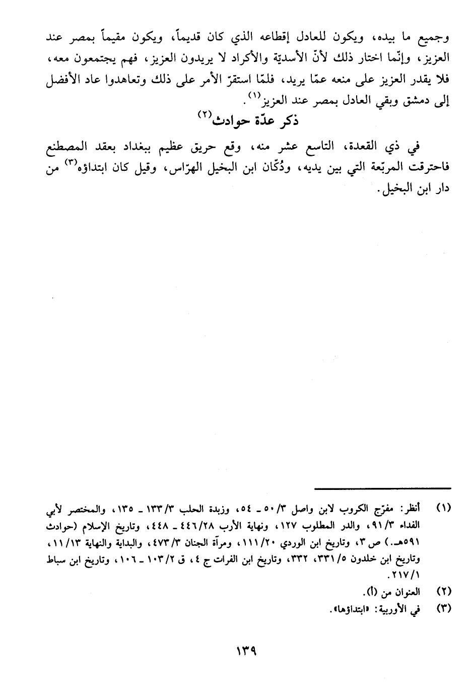 ذِكْرُ عِدَّةِ حَوَادِثَ