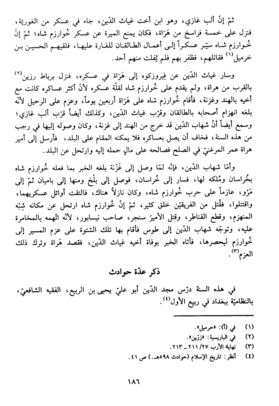 ذِكْرُ عِدَّةِ حَوَادِثَ