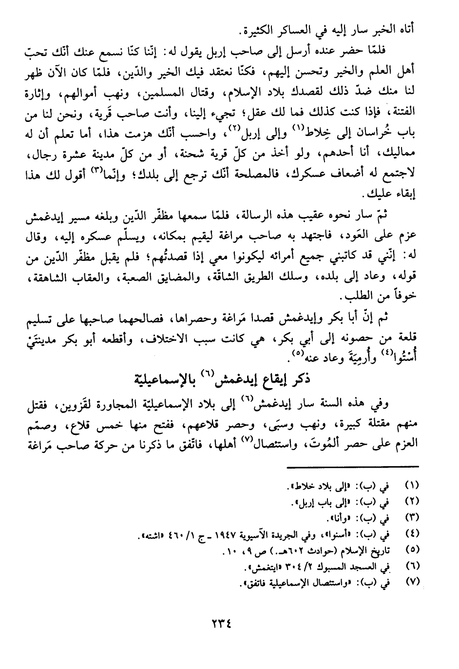 وَفِي هَذِهِ السَّنَةِ سَارَ إِيدْغِمْشَ إِلَى بِلَادِ الْإِسْمَاعِيلِيَّةِ الْمُجَاوِرَةِ لِقَزْوِينَ، فَقَتَلَ مِنْهُمْ مَقْتَلَةً كَبِيرَةً، وَنَهَبَ وَسَبَى وَحَصَرَ قِلَاعَهُمْ، فَفَتَحَ مِنْهَا خَمْسَ قِلَاعٍ، وَصَمَّمَ الْعَزْمَ عَلَى حَصْرِ أَلْمُوتَ وَاسْتِئْصَالِ أَهْلِهَا، فَاتَّفَقَ مَا ذَكَرْنَا مِنْ حَرَكَةِ صَاحِبِ مَرَاغَةَ