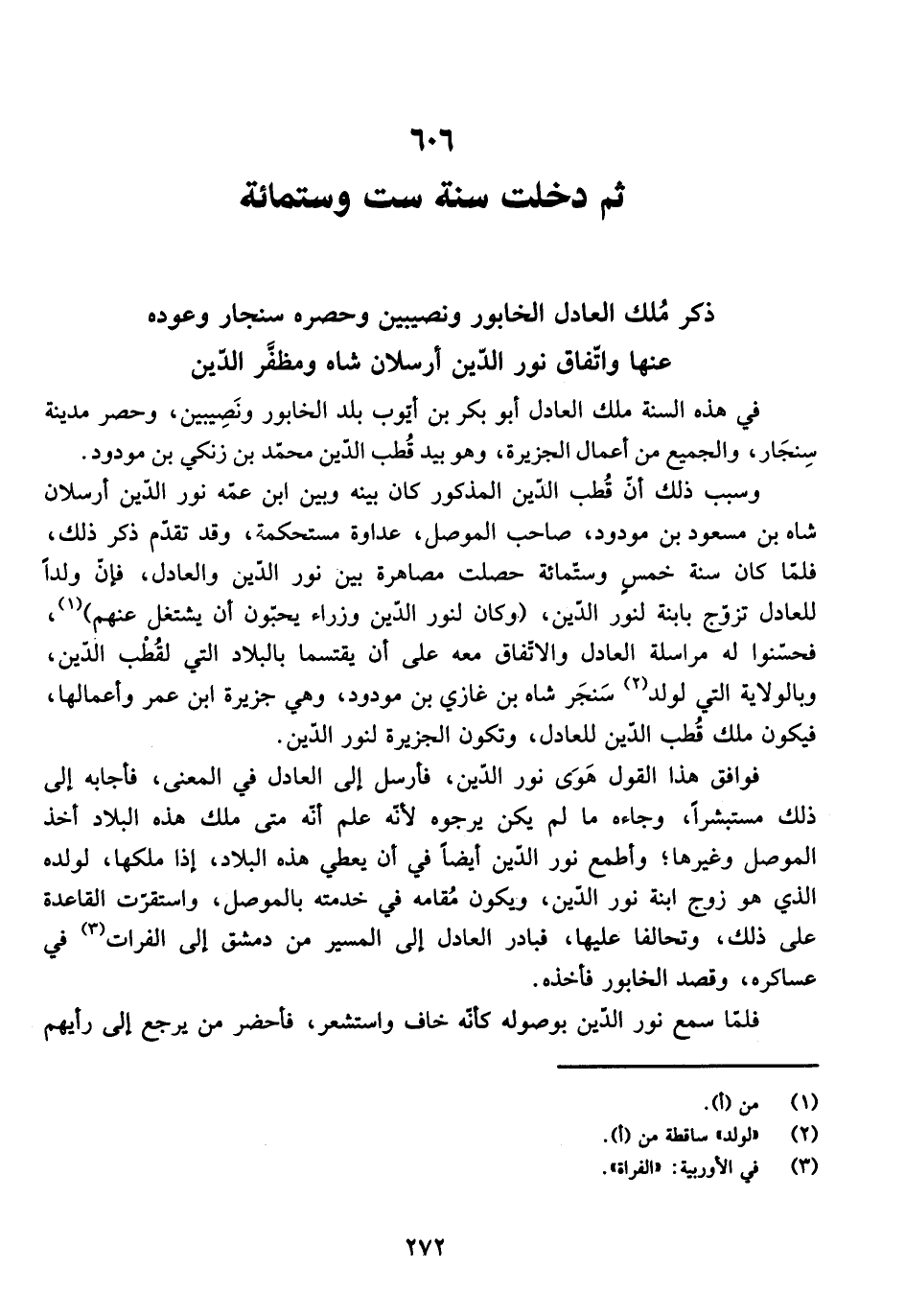 ثُمَّ دَخَلَتْ سَنَةُ سِتٍّ وَسِتِّمِائَةٍ