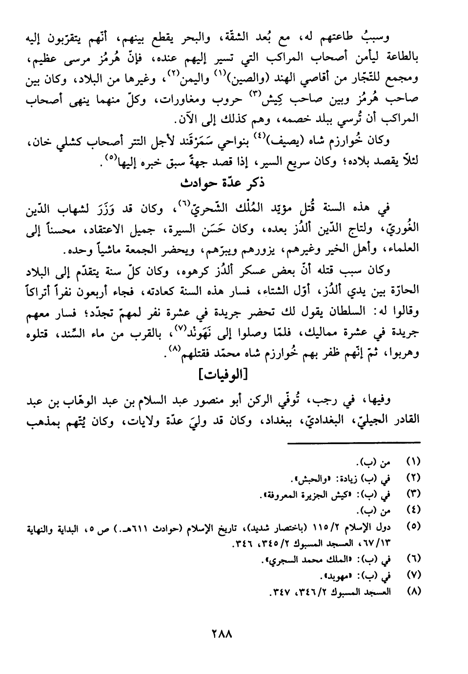 وَفِيهَا فِي رَجَبٍ تُوُفِّيَ الرُّكْنُ أَبُو مَنْصُورٍ عَبْدُ السَّلَامِ بْنُ عَبْدِ الْوَهَّابِ بْنِ عَبْدِ الْقَادِرِ الْجِيلِيُّ الْبَغْدَادِيُّ بِبَغْدَادَ، وَكَانَ قَدْ وَلِيَ عِدَّةَ وِلَايَاتٍ، وَكَانَ يُتَّهَمُ بِمَذْهَبِ