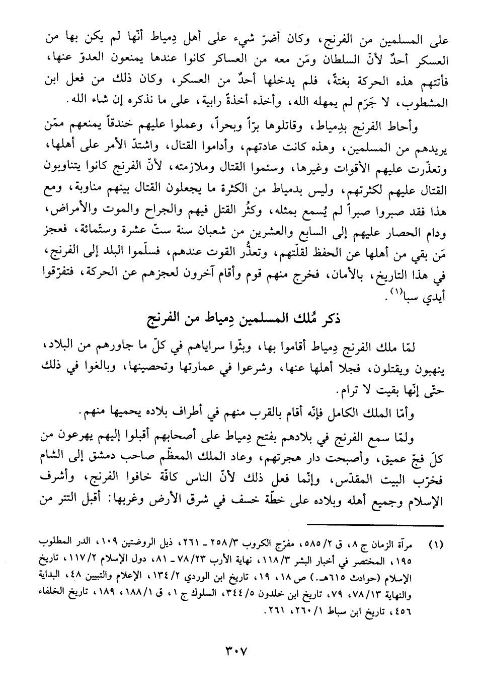 ذِكْرُ مُلْكِ الْمُسْلِمِينَ دِمْيَاطَ مِنَ الْفِرِنْجِ