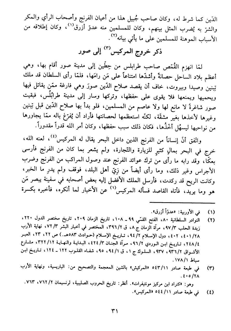 ذِكْرُ خُرُوجِ الْمَرْكِيسِ إِلَى صُورَ