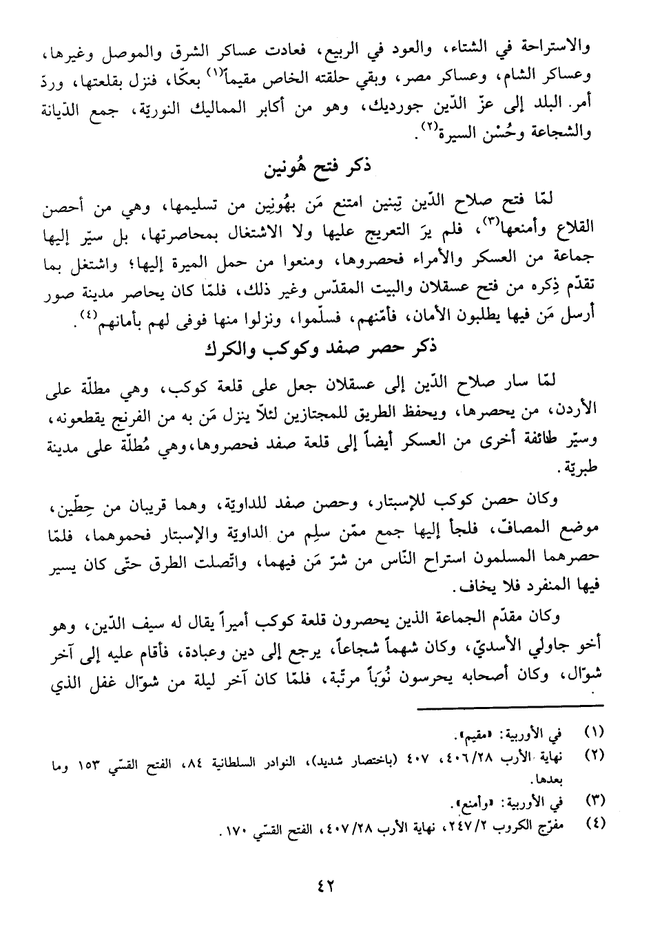وَكَانَ حِصْنُ كَوْكَبَ لِلْإِسْبِتَارِ، وَحِصْنُ صَفَدَ لِلدَّاوِيَّةِ، وَهُمَا قَرِيبَانِ مِنْ حِطِّينَ، مَوْضِعِ الْمَصَافِّ، فَلَجَأَ إِلَيْهَا جَمْعٌ مِمَّنْ سَلِمَ مِنَ الدَّاوِيَّةِ وَالِاسْبِتَارِ فَحَمَوْهُمَا، فَلَمَّا حَصَرَهُمَا الْمُسْلِمُونَ اسْتَرَاحَ النَّاسُ مِنْ شَرِّ مَنْ فِيهِمَا، وَاتَّصَلَتِ الطُّرُقُ حَتَّى كَانَ يَسِيرُ فِيهَا الْمُنْفَرِدُ فَلَا يَخَافُ.