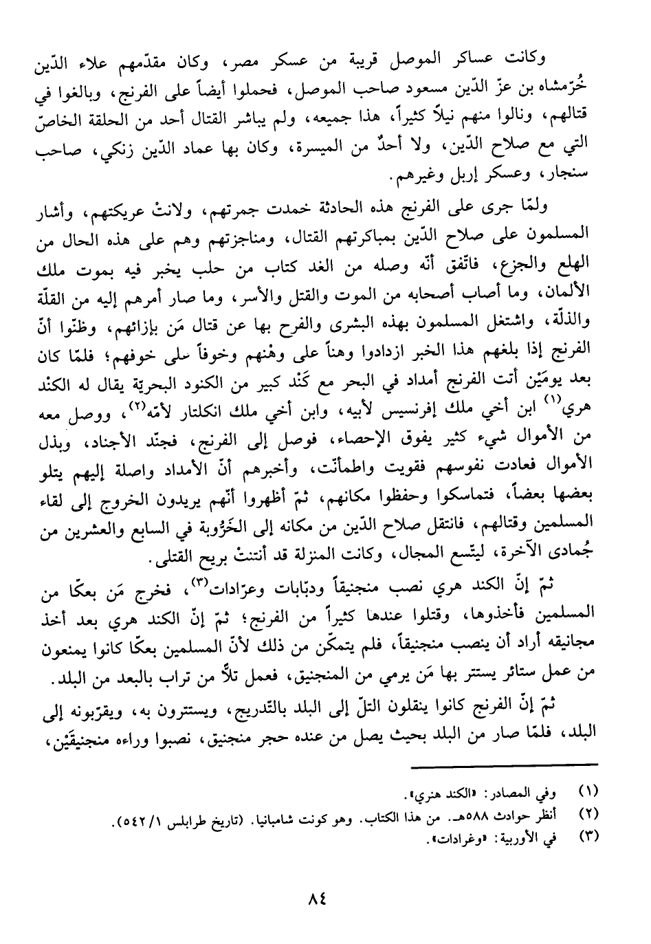 ثُمَّ إِنَّ الْفِرِنْجَ كَانُوا يَنْقُلُونَ التَّلَّ إِلَى الْبَلَدِ بِالتَّدْرِيجِ، وَيَسْتَتِرُونَ بِهِ، وَيُقَرِّبُونَهُ إِلَى الْبَلَدِ، فَلَمَّا صَارَ مِنَ الْبَلَدِ بِحَيْثُ يَصِلُ مَنْ عِنْدَهُ حَجْرُ مَنْجَنِيقٍ، نَصَبُوا وَرَاءَهُ مَنْجَنِيقَيْنِ،