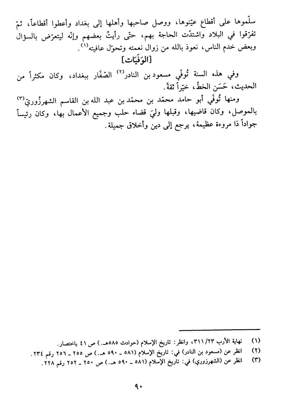 [الْوَفَيَاتُ] وَفَى هَذِهِ السَّنَةِ تُوُفِّيَ مَسْعُودُ بْنُ النَّادِرِ الصّفَّارُ بِبَغْدَادَ، وَكَانَ مُكْثِرًا مِنَ الْحَدِيثِ، حَسَنَ الْخَطِّ، خَيِّرًا ثِقَةً.