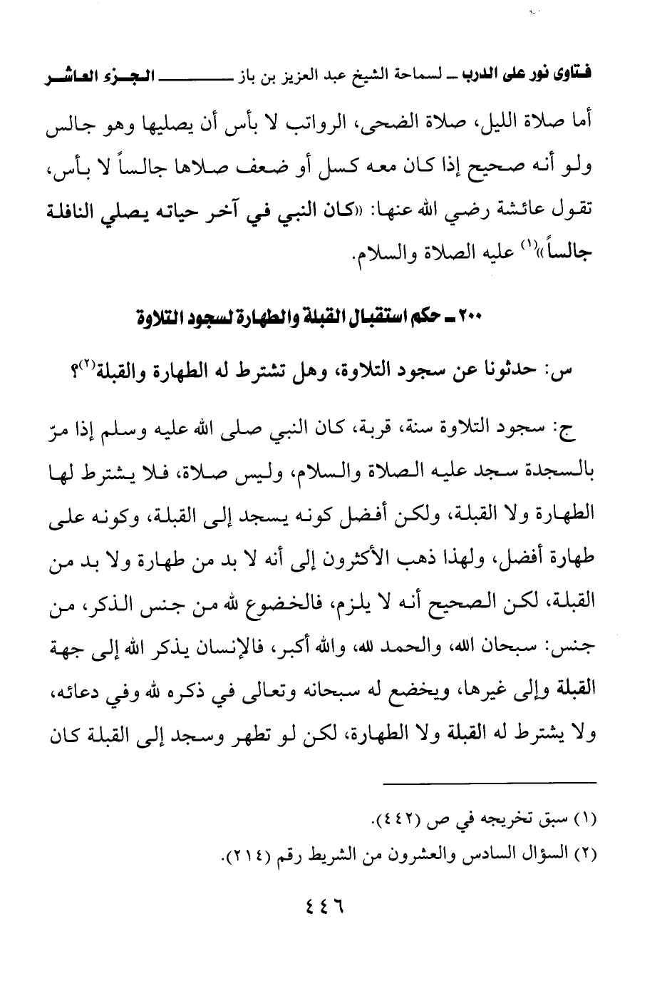 200 - حكم استقبال القبلة والطهارة لسجود التلاوة