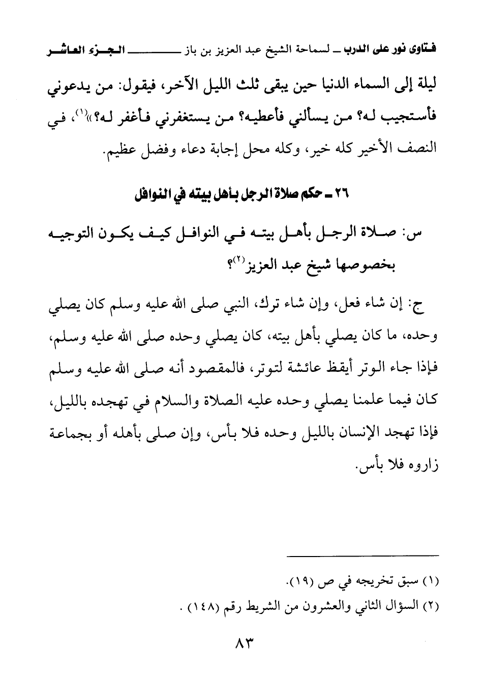 26 - حكم صلاة الرجل بأهل بيته في النوافل