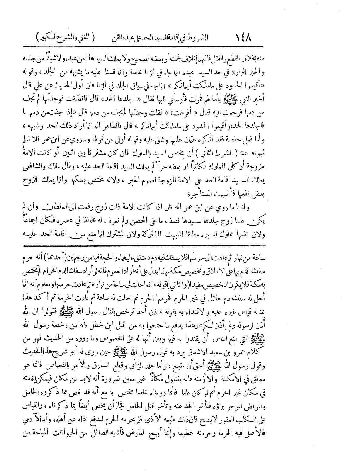 ساعة من نهار ثم عادت الى حرمتها فلا يسفك فيه دم) متفق عليهما، والحجة فيه من وجهين (أحدهما) أنه حرم سفك الدم بها على الاطلاق وتخصيص مكة بهذا يدل على أنه أراد العموم فإنه لو أراد سفك الدم الحرام لم تختص به مكة فلا يكون التخصيص مفيداً (والثاني) قوله (انما حلت لي ساعة من نهار) ثم عادت حرمتها ومعلوم أنه إنما أحل له سفك دم حلال في غير الحرم فحرمها الحرم ثم أحلت له ساعة ثم عادت الحرمة ثم أكد هذا بمنه قياس غيره عليه والاقتداء به بقوله (فان أحد ترخص بقتال رسول الله صلى الله عليه وسلم فقولوا ان الله أذن لرسوله ولم يأذن لكم) وهذا يدفع ما احتجوا به من قتل ابن خطل فانه من رخصة رسول الله صلى الله عليه وسلم التي منع الناس أن يقتدوا به فيها وبين أنها له على الخصوص وما رووه من الحديث فهو من كلام عمرو بن سعيد الاشدق يرد به قول رسول الله صلى الله عليه وسلم حين روى له أبو شريح هذا الحديث وقول رسول الله صلى الله عليه وسلم أحق أن يتبع، وأما جلد الزاني وقطع السارق والأمر بالقصاص فإنما هو مطلق في الأمكنة والأزمنة فإنه يتناول مكاناً غير معين ضرورة أنه لابد من مكان فيمكن إقامته