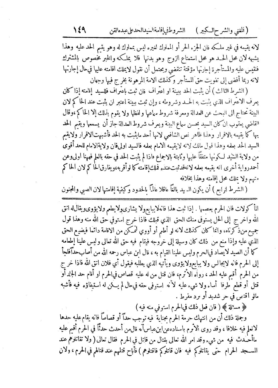 (مسألة) (فان فعل ذلك في الحرم استوفي منه فيه) وجملة ذلك أن من انتهك حرمة الحرم بجناية فيه توجب حداً أو قصاصاً فانه يقام عليه حدها لا نعلم فيه خلافا، وقد روى الأثرم بإسناده عن ابن عباس أنه قال من أحدث حدثاً في الحرم أقيم عليه ما أحدث فيه من شئ وقد أمر الله تعالى بقتال من قاتل في الحرم فقال تعالى (ولا تقاتلوهم عند المسجد الحرام حتى يقاتلوكم فيه فإن قاتلوكم فاقتلوهم) فأباح قتلهم عند قتالهم في الحرم، ولأن