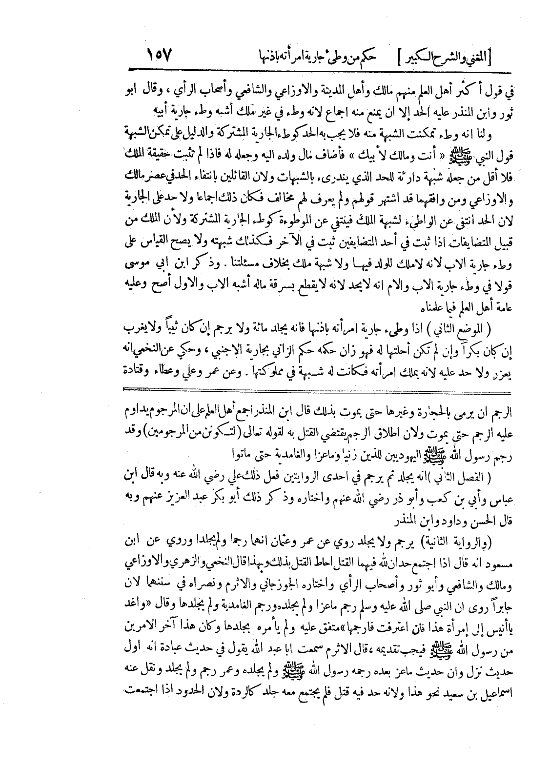 الرجم أن يرمى بالحجارة وغيرها حتى يموت بذلك قال إبن المنذر أجمع أهل العلم على أن المرجوم يداوم عليه الرجم حتى يموت ولأن اطلاق الرجم يقتضي القتل به لقوله تعالى (لتكونن من المرجومين) وقد رجم رسول الله صلى الله عليه وسلم اليهوديين للذين زنيا وماعزا والغامدية حتى ماتوا (الفصل الثاني) أنه يجلد ثم يرجم في إحدى الروايتين فعل ذلك علي رضي الله عنه وبه قال ابن عباس وأبي بن كعب وأبو ذر رضي الله عنهم واختاره وذكر ذلك أبو بكر عبد العزيز عنهم وبه قال الحسن وداود وابن المنذر (والرواية الثانية) يرجم ولا يجلد روي عن عمر وعثمان انهما رجما ولم يجلدا وروي عن ابن مسعود أنه قال إذا اجتمع حدان لله فيهما القتل أحاط القتل بذلك وبهذا قال النخعي والزهري والاوزاعي ومالك والشافعي وأبو ثور وأصحاب الرأي واختاره الجوزجاني والاثرم ونصراه في سننهما لأن جابراً روي أن النبي صلى الله عليه وسلم رجم ماعزا ولم يجلده ورجم الغامدية ولم يجلدها وقال (واغد يا أنيس الى امرأة هذا فان اعترفت فارجمها) متفق عليه ولم يأمره بجلدها وكان هذا آخر الأمرين من رسول الله صلى الله عليه وسلم فيجب تقديمه، قال الأثرم سمعت أبا عبد الله يقول في حديث عبادة أنه اول حديث نزل وأن حديث ماعز بعده رجمه رسول الله صلى الله عليه وسلم ولم يجلده وعمر رجم ولم يجلد ونقل عنه اسماعيل بن سعيد نحو هذا ولأنه حد فيه قتل فلم يجتمع معه جلد كالردة ولأن الحدود إذا اجتمعت