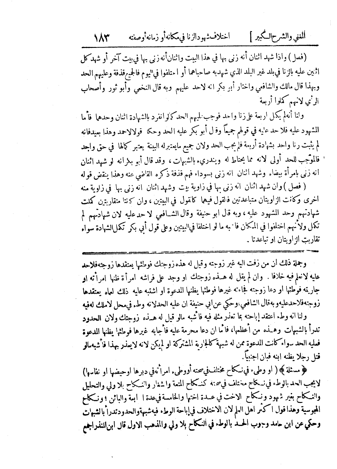 (مسألة) (أو وطئ في نكاح مختلف في صحته أو وطئ امرأته في دبرها أو حيضها أو نفاسها) لا يجب الحد بالوطئ في نكاح مختلف في صحته كنكاح المتعة والشغار والنكاح بلا ولي والتحليل والنكاح بغير شهود ونكاح الأخت في عدة أختها والخامسة في عدة الرابعة والبائن: ونكاح المجوسية وهذا قول أكثر أهل العلم لأن الاختلاف في إباحة الوطئ فيه شبهة والحدود تدرأ بالشبهات وحكي عن ابن حامد وجوب الحد بالوطئ في النكاح بلا ولي والمذهب الأول قال إبن المنذر أجمع