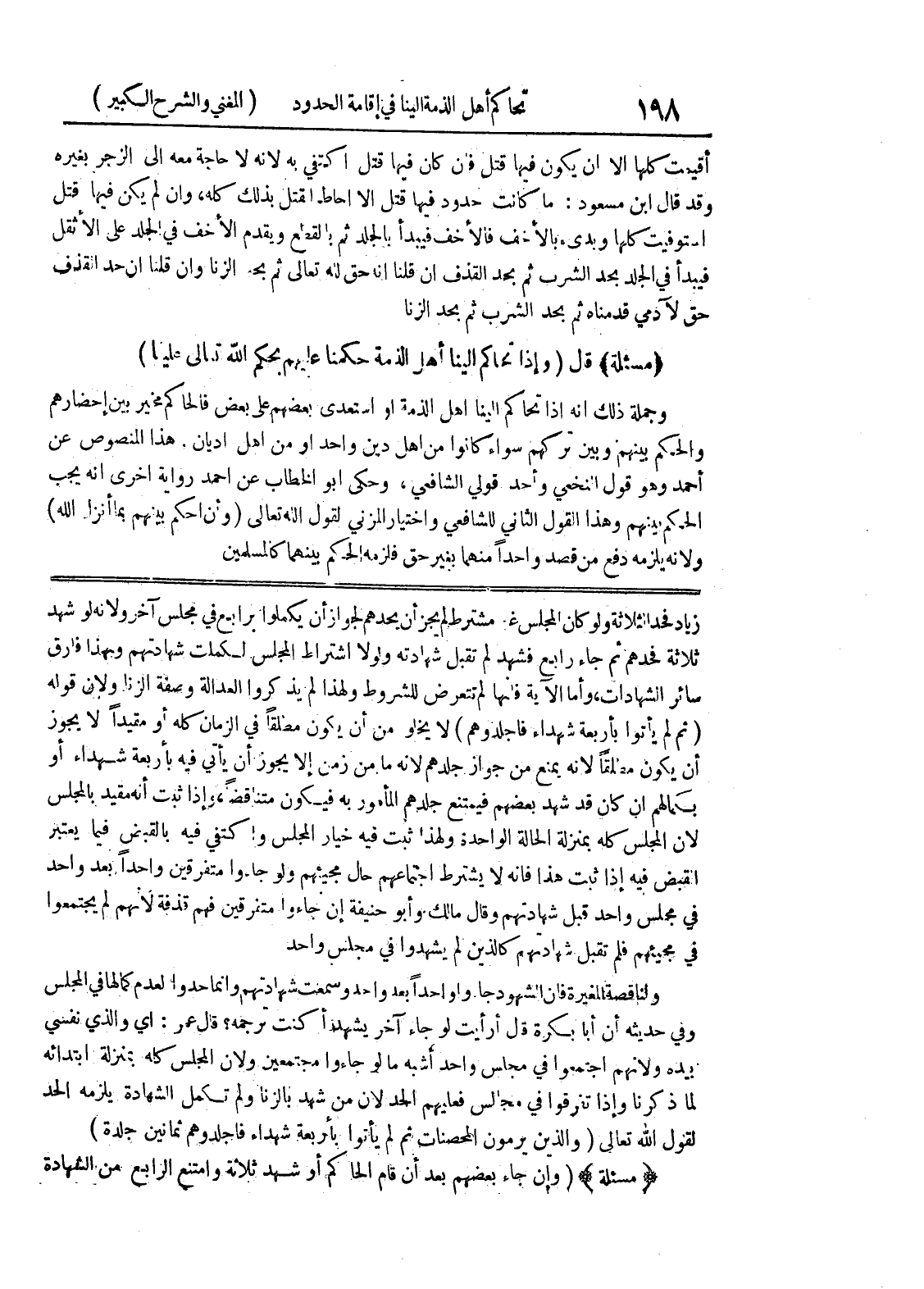 في مجيئهم فلم تقبل شهادتهم كالذين لم يشهدوا في مجلس واحد ولنا قصة المغيرة فان الشهود جاءوا واحداً بعد واحد وسمعت شهادتهم وإنما حدوا لعدم كمالها في المجلس وفي حديثه أن أبا بكرة قال أرأيت لو جاء آخر يشهد أكنت ترجمه؟ قال عمر: أي والذي نفسي بيده ولأنهم اجتمعوا في مجلس واحد أشبه مالو جاءوا مجتمعين ولأن المجلس كله بمنزلة ابتدائه لما ذكرنا وإذا تفرقوا في مجالس فعليهم الحد لأن من شهد بالزنا ولم تكمل الشهادة يلزمه الحد لقول الله تعالى (والذين يرمون المحصنات ثم لم يأتوا بأربعة شهداء فاجلدوهم ثمانين جلدة) (مسألة) (وإن جاء بعضهم بعد أن قام الحاكم أو شهد ثلاثة وامتنع الرابع من الشهادة