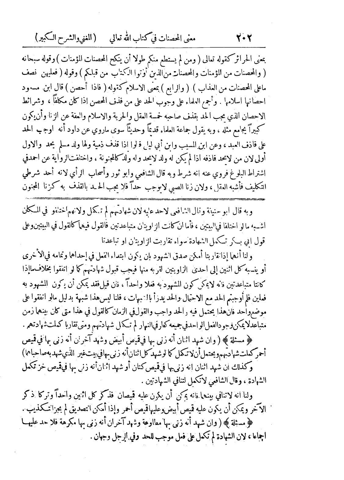 ولنا أنهما إذا تقاربتا أمكن صدق الشهود بأن يكون ابتداء الفعل في إحداهما وتمامه في الأخرى أو ينسبه كل اثنين الى إحدى الزوايتين لقربه منها فيجب قبول شهادتهم كما لو اتفقوا بخلاف ما إذا كانتا متباعدتين فإنه لا يمكن كون المشهود به فعلاً واحداً، فإن قيل فقد يمكن أن يكون المشهود به فعلين فلم أوجبتهم الحد مع الاحتمال والحد يدرأ بالشبهات، قلنا ليس هذا شبهة بدليل ما لو اتفقوا على موضع واحد فان هذا يحتمل فيه والحد واجب والقول في الزمان كالقول في هذا متى كان بينهما زمن متباعد لا يمكن وجود الفعل الواحد في جميعه كطرفي النهار لم تكمل شهادتهم ومتى تقاربا كملت شهادتهم.