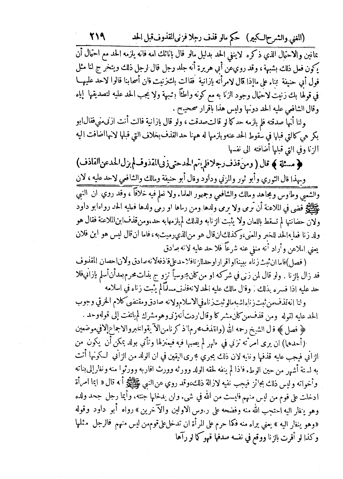 ولو قال لمن زنى في شركه أو من كان مجوسيا تزوج بذات محرم بعد أن أسلم يا زاني فلا حد عليه إذا فسره بذلك وقال مالك عليه الحد لأنه قذف مسلما لم يثبت زناه في إسلامه ولنا أنه قذف من ثبت زناه أشبه ما لو ثبت زناه في الاسلام لانه صادق ومقتضى كلام الخرقي وجوب الحد عليه لقوله ومن قذف من كان مشركاً وقال أردت أنه زنى وهو مشرك لم يلتفت إلى قوله وحد.