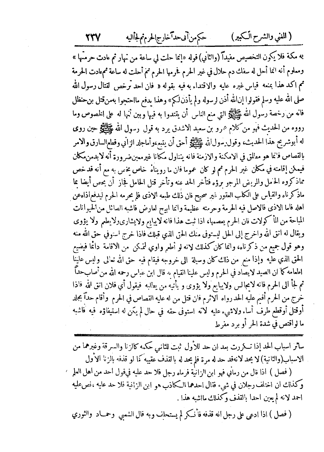 سائر أسباب الحد إذا تكررت بعد أن حد للأول ثبت للثاني حكمه كالزنا والسرقة وغيرهما من الاسباب (والثانية) لا يحد لأنه قد حد له مرة فلم يحد له بالقذف عقيبه كما لو قذفه بالزنا الأول (فصل) إذا قال من رماني فهو ابن الزانية فرماه رجل فلا حد عليه في قول أحد من أهل العلم