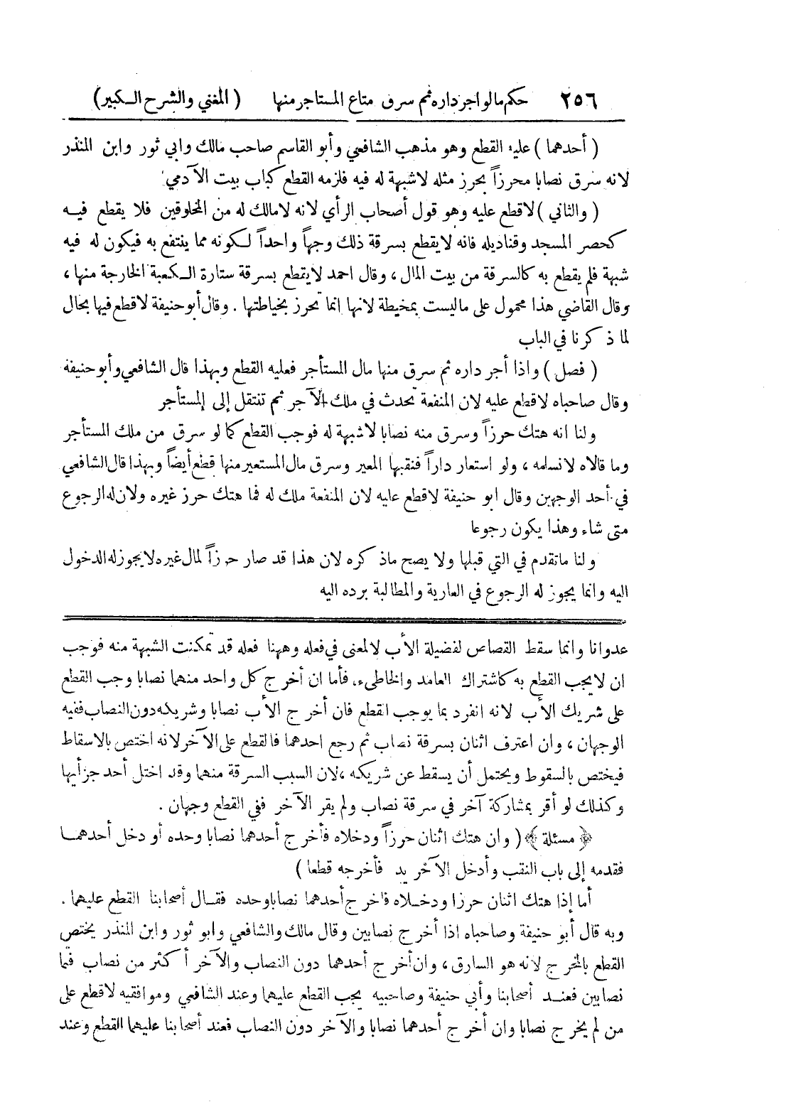 على شريك الأب لأنه انفرد بما يوجب القطع فان أخرج الأب نصابا وشريكه دون النصاب ففيه الوجهان، وإن اعترف اثنان بسرقة نصاب ثم رجع أحدهما فالقطع على الآخر لأنه اختص بالاسقاط فيختص بالسقوط ويحتمل أن يسقط عن شريكه، لأن السبب السرقة منهما وقد اختل أحد جزأيها وكذلك لو أقر بمشاركة آخر في سرقة نصاب ولم يقر الآخر ففي القطع وجهان.