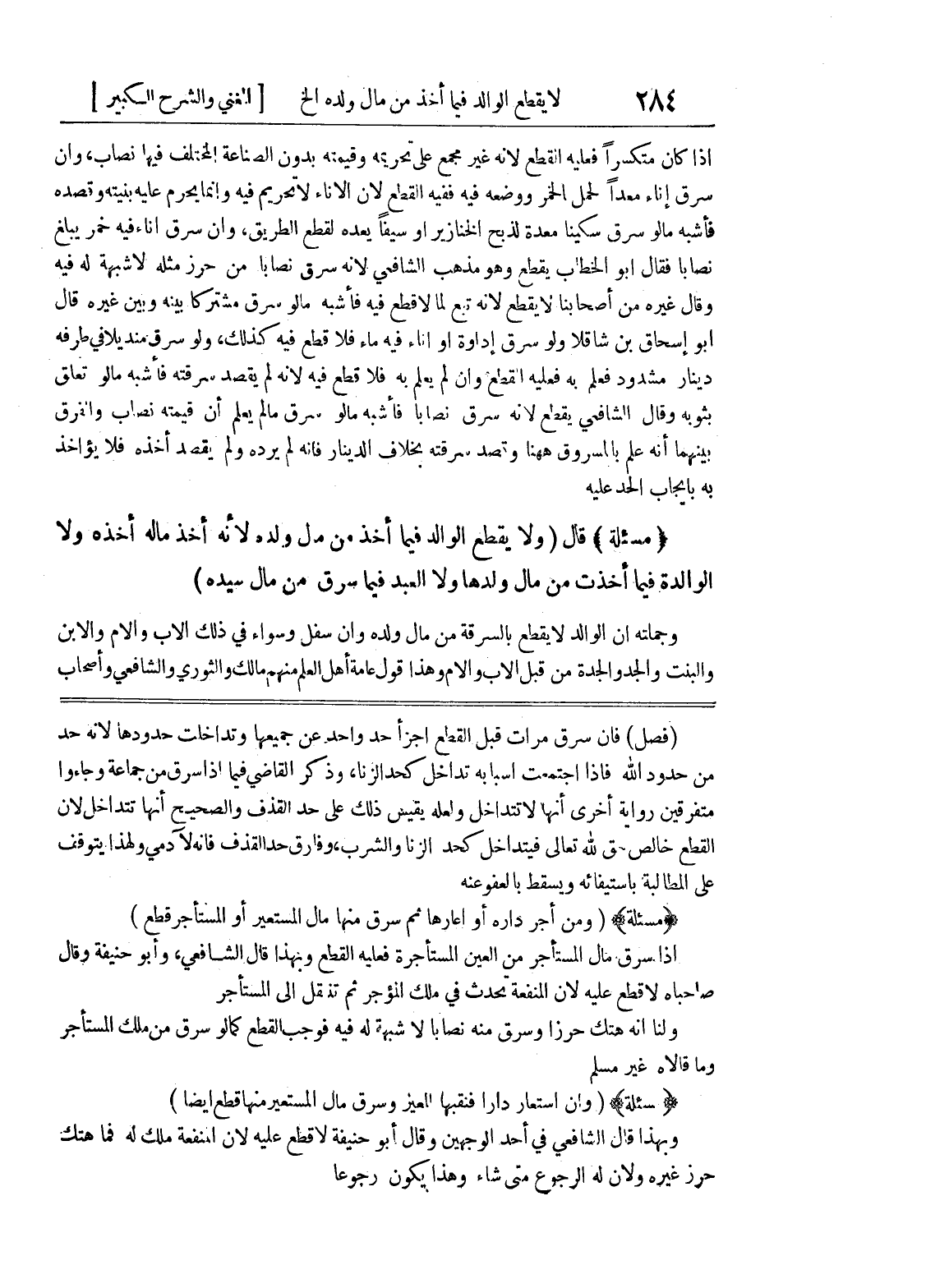 (فصل) فان سرق مرات قبل القطع أجزأ حد واحد عن جميعها وتداخلت حدودها لأنه حد من حدود الله فاذا اجتمعت أسبابه تداخل كحد الزنا، وذكر القاضي فيما إذا سرق من جماعة وجاءوا متفرقين رواية أخرى أنها لا تتداخل ولعله يقيس ذلك على حد القذف والصحيح أنها تتداخل لأن القطع خالص حق لله تعالى فيتداخل كحد الزنا والشرب، وفارق حد القذف فانه لآدمي ولهذا يتوقف على المطالبة باستيفائه ويسقط بالعفو عنه (مسألة) (ومن أجر داره أو أعارها ثم سرق منها مال المستعير أو المستأجر قطع) اذا سرق مال المستأجر من العين المستأجرة فعليه القطع وبهذا قال الشافعي، وأبو حنيفة وقال صاحباه لا قطع عليه لأن المنفعة تحدث في ملك المؤجر ثم تنقل الى المستأجر ولنا أنه هتك حرزا وسرق منه نصابا لا شبهة له فيه فوجب القطع كما لو سرق من ملك المستأجر وما قالاه غير مسلم (مسألة) (وإن استعار داراً فنقبها المعير وسرق مال المستعير منها قطع أيضاً) وبهذا قال الشافعي في أحد الوجهين وقال أبو حنيفة لا قطع عليه لأن المنفعة ملك له فما هتك