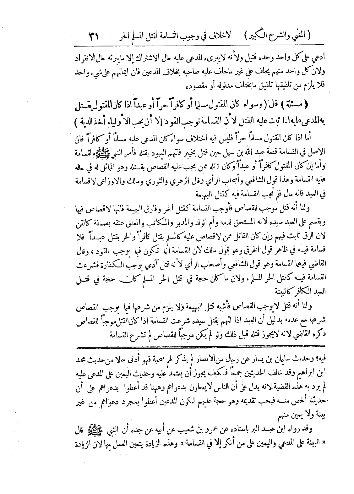 فيه؟ وحديث سليمان بن يسار عن رجال من الانصار لم يذكر لهم صحبة فهو أدنى حالا من حديث محمد ابن ابرايهم وقد خالف الحديثين جميعاً فكيف يجوز أن يعتمد عليه وحديث اليمين على المدعي عليه لم يرد به هذه القضية لأنه يدل على أن الناس لا يعطون بدعواهم وههنا قد أعطوا بدعواهم على أن حديثنا أخص منه فيجب تقديمه وهو حجة عليهم لكون المدعين أعطوا بمجرد دعواهم من غير بينة ولا يمين منهم وقد رواه ابن عبد البر بإسناده عن عمرو بن شعيب عن أبيه عن جده أن النبي صلى الله عليه وسلم قال (البينة على المدعي واليمين على من أنكر إلا في القسامة) وهذه الزيادة يتعين العمل بها لأن الزيادة