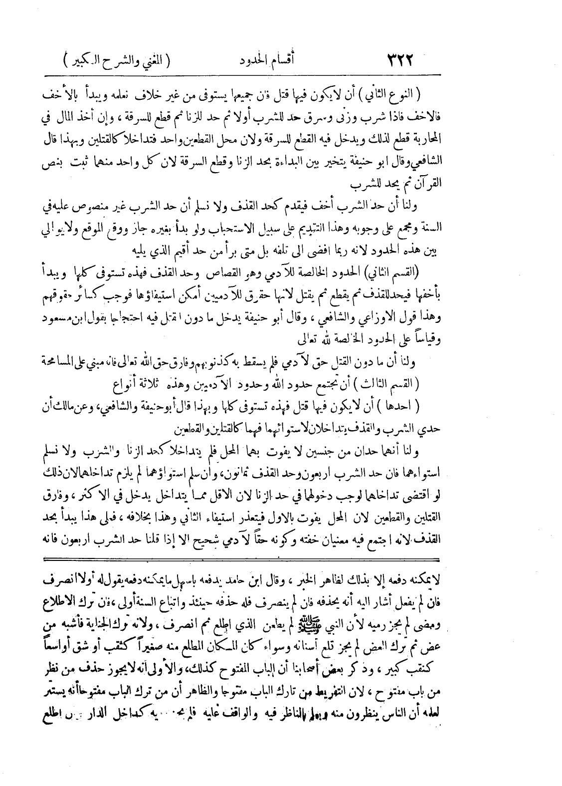 لا يمكنه دفعه إلا بذلك لظاهر الخبر، وقال ابن حامد يدفعه بأسهل ما يمكنه دفعه يقول له اولا انصرف فان لم يفعل أشار اليه أنه يحذفه فإن لم ينصرف فله حذفه حينئذ واتباع السنة أولى، فإن ترك الاطلاع ومضى لم يجز رميه لأن النبي صلى الله عليه وسلم لم يطعن الذي اطلع ثم انصرف، ولأنه ترك الجناية فأشبه من عض ثم ترك العض لم يجز قلع اسنانه وسواء كان المكان المطلع منه صغيراً كثقب أو شق أو واسعاً كنقب كبير، وذكر بعض أصحابنا أن الباب المفتوح كذلك، والأولى أنه لا يجوز حذف من نظر من باب مفتوح، لأن التفريط من تارك الباب مفتوجا (مفتوحا) والظاهر أن من ترك الباب مفتوحاً أنه يستتر لعلمه أن الناس ينظرون منه وبعلم بالناظر فيه والواقف عليه فلم (يجز رميه) كداخل الدار وان اطلع