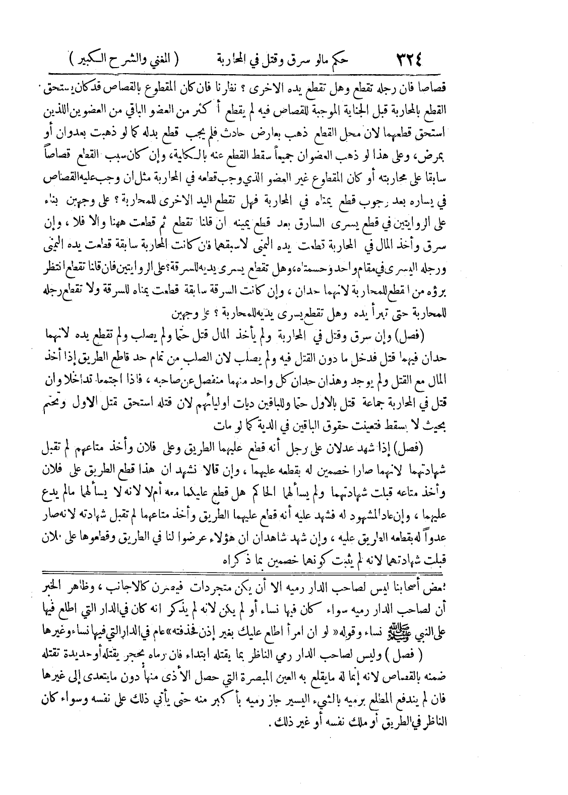 بعض أصحابنا ليس لصاحب الدار رميه إلا أن يكن متجردات فيصرن كالاجانب، وظاهر الخبر أن لصاحب الدار رميه سواء كان فيها نساء أو لم يكن لأنه لم يذكر أنه كان في الدار التي اطلع فيها على النبي صلى الله عليه وسلم نساء وقوله (لو أن امرأ اطلع عليك بغير اذن فحذفته) عام في الدار التي فيها نساء وغيرها (فصل) وليس لصاحب الدار رمي الناظر بما يقتله ابتداء فان رماه بحجر يقتله أو حديدة تقتله ضمنه بالقصاص لأنه إنما له ما يقلع به العين المبصرة التي حصل الأذى منها دون ما يتعدى إلى غيرها فان لم يندفع المطلع برميه بالشئ اليسير جاز رميه بأكبر منه حتى يأتي ذلك على نفسه وسواء كان الناظر في الطريق او ملك نفسه أو غير ذلك.