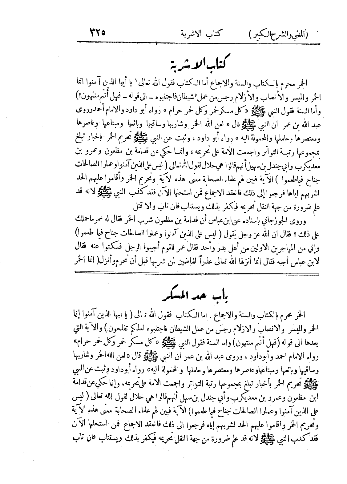باب حد المسكر الخمر محرم بالكتاب والسنة والإجماع.