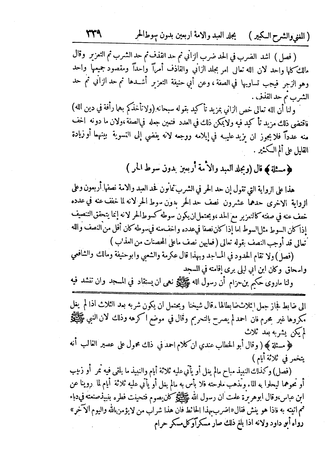 إلى ضابط فجاز جعل الثلاث ضابطاً لها، قال شيخنا ويحتمل أن يكون شربه بعد الثلاث إذا لم يغل مكروهاً غير محرم فإن أحمد لم يصرح بالتحريم وقال في موضع أكرهه وذلك لأن النبي صلى الله عليه وسلم لم يكن يشربه بعد ثلاث (مسألة) (وقال أبو الخطاب عندي أن كلام أحمد في ذلك محمول على عصير الغالب أنه يتخمر في ثلاثة أيام) (فصل) وكذلك النبيذ مباح ما لم يغل أو يأتي عليه ثلاثة أيام والنبيذ ما يلقى فيه تمر أو زبيب أو نحوهما ليحلوا به الماء وتذهب ملوحته فلا بأس به ما لم يغل أو يأتي عليه ثلاثة أيام لما روينا عن ابن عباس، وقال أبو هريرة علمت أن رسول الله صلى الله عليه وسلم كان يصوم فتحينت فطره بنبيذ صنعته في دباء ثم أتيته به فإذا هو ينش فقال (اضرب بهذا الحائط فإن هذا شراب من لا يؤمن بالله واليوم الآخر) رواه أبو داود ولأنه إذا بلغ ذلك صار مسكراً وكل مسكر حرام