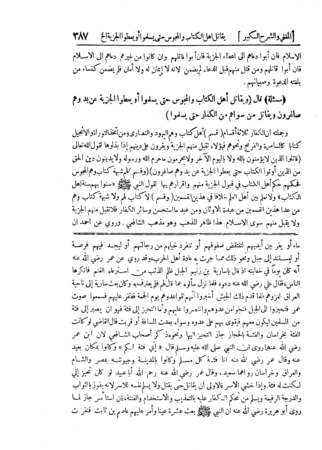 ماء أو يفر بين أيديهم لتنتقض صفوفهم أو تنفرد خيلهم من رجالتهم أو ليجد فيهم فرصة أو ليستند إلى جبل ونحو ذلك مما جرت به عادة أهل الحرب، وقد روي عن عمر رضي الله عنه أنه كان يوماً في خطبته إذا قال يا سارية بن زنيم الجبل ظلم الذئب من استرعاه الغنم فأنكرها الناس، فقال علي رضي الله عنه دعوه فلما نزل سألوه عما قال لهم فلم يعترف به وكان بعث سارية إلى ناحية العراق لغزوهم فلما قدم ذلك الجيش أخبروا أنهم لقوا عدوهم يوم الجمعة فظفر عليهم فسمعوا صوت عمر فتحيزوا إلى الجبل فنجوا من عدوهم وانتصروا عليهم وأما التحيز إلى فئة فهو أن يصير إلى فئة من المسلمين ليكون معهم فيقوى بهم على عدوه وسواء بعدت المسافة أو قربت قال القاضي لو كانت الفئة بخراسان والفئة بالحجاز جاز التحيز إليها ونحوه ذكر أصحاب الشافعي لأن ابن عمر رضي الله عنهما روي أن النبي صلى الله عليه وسلم قال (إني فئة لكم) كانوا بمكان بعيد عنه وقال عمر رضي الله عنه أنا فئة كل مسلم وكانوا بالمدينة وجيوشه بمصر والشام والعراق وخراسان رواهما سعيد، وقال عمر رضي الله عنه رحم الله أبا عبيد لو كان تحيز إلي لكنت له فئة.