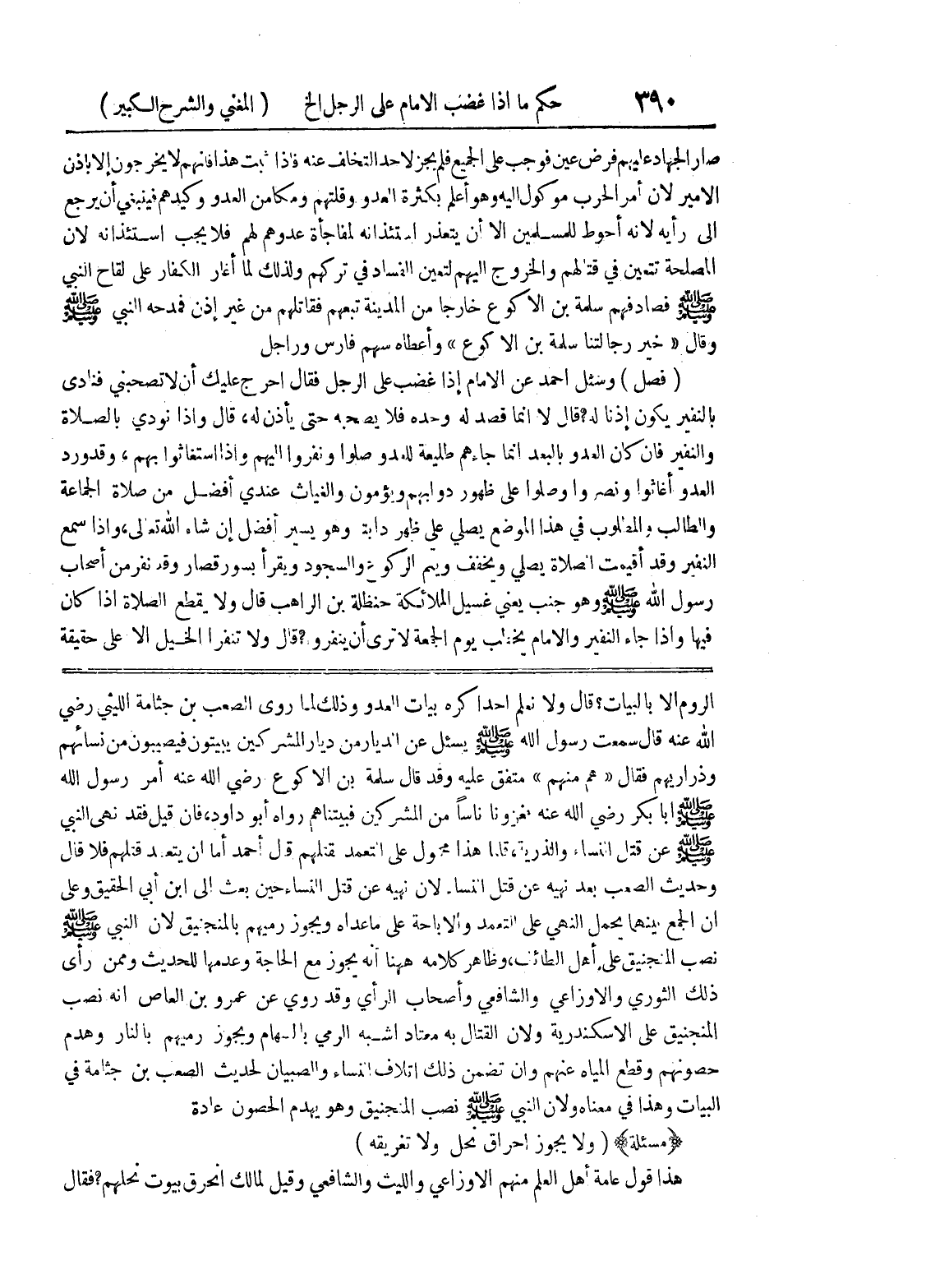 الروم إلا بالبيات؟ قال ولا نعلم أحداً كره بيات العدو وذلك لما روى الصعب بن جثامة الليثي رضي الله عنه قال سمعت رسول الله صلى الله عليه وسلم يسئل عن الديار من ديار المشركين يبيتون فيصيبون من نسائهم وذراريهم فقال (هم منهم) متفق عليه وقد قال سلمة بن الأكوع رضي الله عنه أمر رسول الله صلى الله عليه وسلم أبا بكر رضي الله عنه فغزونا ناساً من المشركين فبيتناهم رواه أبو داود، فإن قيل فقد نهى النبي صلى الله عليه وسلم عن قتل النساء والذرية، قلنا هذا محمول على التعمد قتلهم (لقتلهم) قال أحمد أما أن يتعمد قتلهم فلا قال وحديث الصعب بعد نهيه وعن قتل النساء لأن نهيه عن قتل النساء حين بعث إلى ابن أبي الحقيق وعلى أن الجمع بينهما يحمل النهي على التعمد والإباحة على ما عداه ويجوز رميهم بالمنجنيق لأن النبي صلى الله عليه وسلم نصب المنجنيق على أهل الطائف، وظاهر كلامه ههنا أنه يجوز مع الحاجة وعدمها للحديث وممن رأى ذلك الثوري والاوزاعي والشافعي وأصحاب الرأي وقد روي عن عمرو بن العاص أنه نصب المنجنيق على الإسكندرية ولأن القتال به معتاد أشبه الرمي بالسهام وبجوز رميهم بالنار وهدم حصونهم وقطع المياه عنهم وإن تضمن ذلك إتلاف النساء والصبيان لحديث الصعب بن جثامة في البيات وهذا في معناه ولأن النبي صلى الله عليه وسلم نصب المنجنيق وهو يهدم الحصون عادة (مسألة) (ولا يجوز إحراق نحل ولا تغريقه) هذا قول عامة أهل العلم منهم الأوزاعي والليث والشافعي وقيل لمالك أنحرق بيوت نحلهم؟ فقال