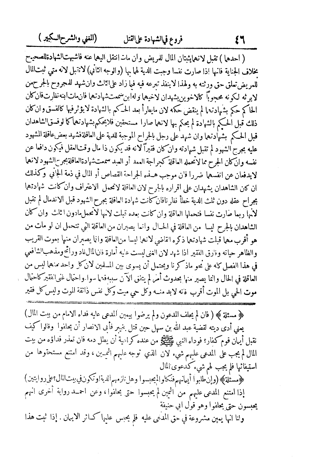 (مسألة) (فإن لم يحلف المدعون ولم يرضوا بيمين المدعى عليه فداه الامام من بيت المال) يعني أدى ديته لقضية عبد الله بن سهل حين قتل بخيبر فأبى الانصار أن يحلفوا وقالوا كيف نقبل أيمان قوم كفار؟ فوداه النبي صلى الله عليه وسلم من عنده كراهية أن يطل دمه فان تعذر فداؤه من بيت المال لم يجب على المدعى عليهم شئ لان الذي توجه عليهم اليمين، وقد امتنع مستحقوها من استيفائها فلم يجب لهم شئ كدعوى المال (مسألة) (وإن طلبوا أيمانهم فنكلوا لم يحبسوا وهل تلزمهم الدية أو تكون في بيت المال؟ على روايتين) إذا امتنع المدعى عليهم من اليمين لم يحبسوا حتى يحلفوا، وعن أحمد رواية أخرى أنهم يحبسون حتى يحلفوا وهو قول أبي حنيفة ولنا أنها يمين مشروعة في حق المدعى عليه فلم يحبس عليها كسائر الايمان.