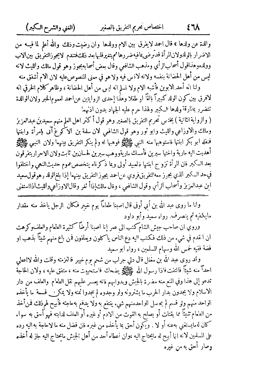 ولنا ما روى عبد الله بن أبي أوفى قال أصبنا طعاماً يوم خيبر فكان الرجل يأخذ منه مقدار ما يكفيه ثم ينصرف.