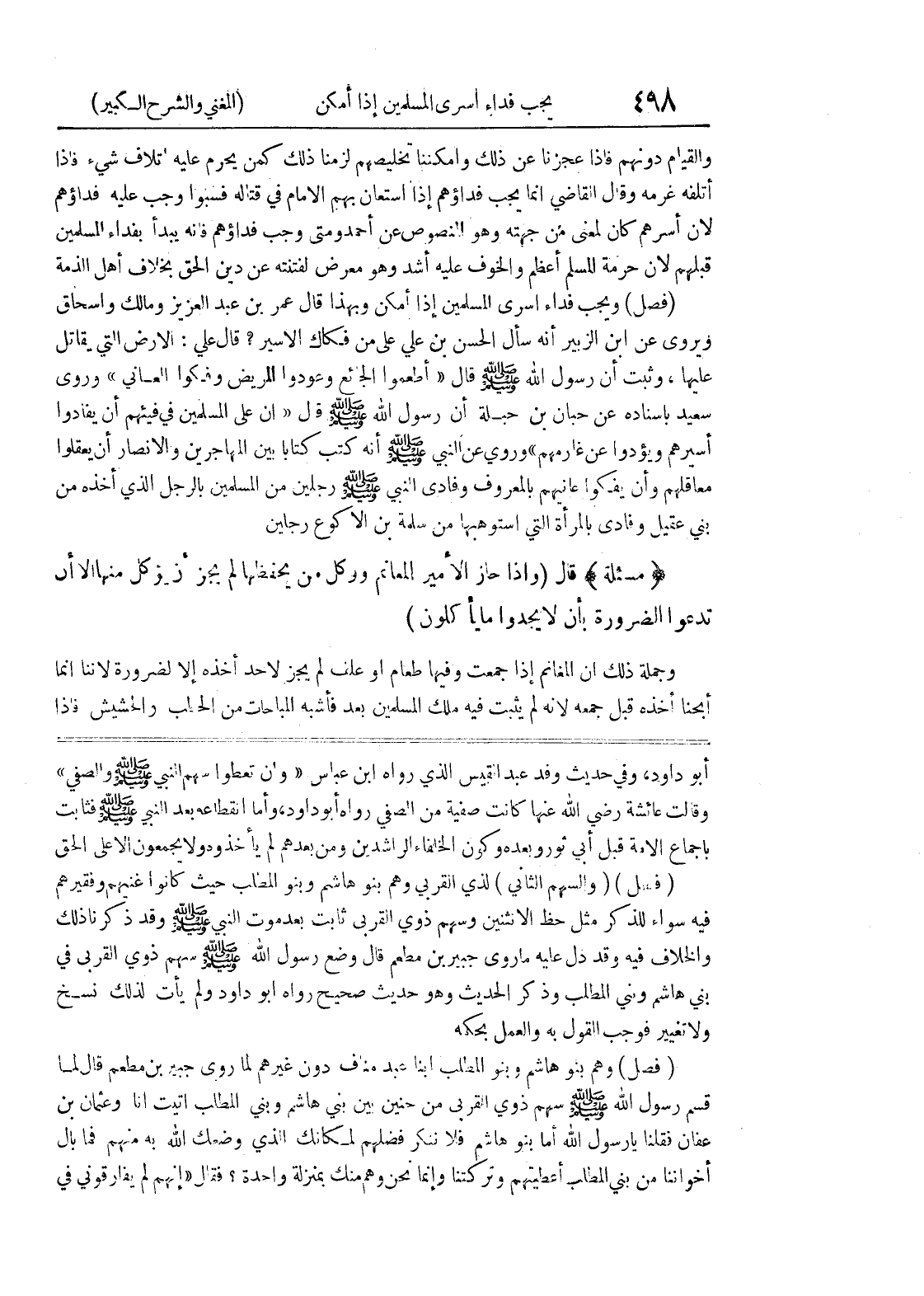 فيه سواء للذكر مثل حظ الأنثيين وسهم ذوي القربى ثابت بعد موت النبي صلى الله عليه وسلم وقد ذكرنا ذلك والخلاف فيه وقد دل عليه ماروى جبيربن مطعم قال وضع رسول الله صلى الله عليه وسلم سهم ذوي القربى في بني هاشم وبني المطلب وذكر الحديث وهو حديث صحيح رواه أبو داود ولم يأت لذلك نسخ ولا تغيير فوجب القول به والعمل بحكمه (فصل) وهم بنو هاشم وبنو المطلب ابنا عبد مناف دون غيرهم لما روى جبير بن مطعم قال لما قسم رسول الله صلى الله عليه وسلم سهم ذوي القربى من حنين بين بني هاشم وبني المطلب أتيت أنا وعثمان بن عفان فقلنا يارسول الله أما بنو هاشم فلا ننكر فضلهم لمكانك الذي وضعك الله به منهم فما بال إخواننا من بني المطلب أعطيتهم وتركتنا وإنما نحن وهم منك بمنزلة واحدة؟ فقال (إنهم لم يفارقوني في