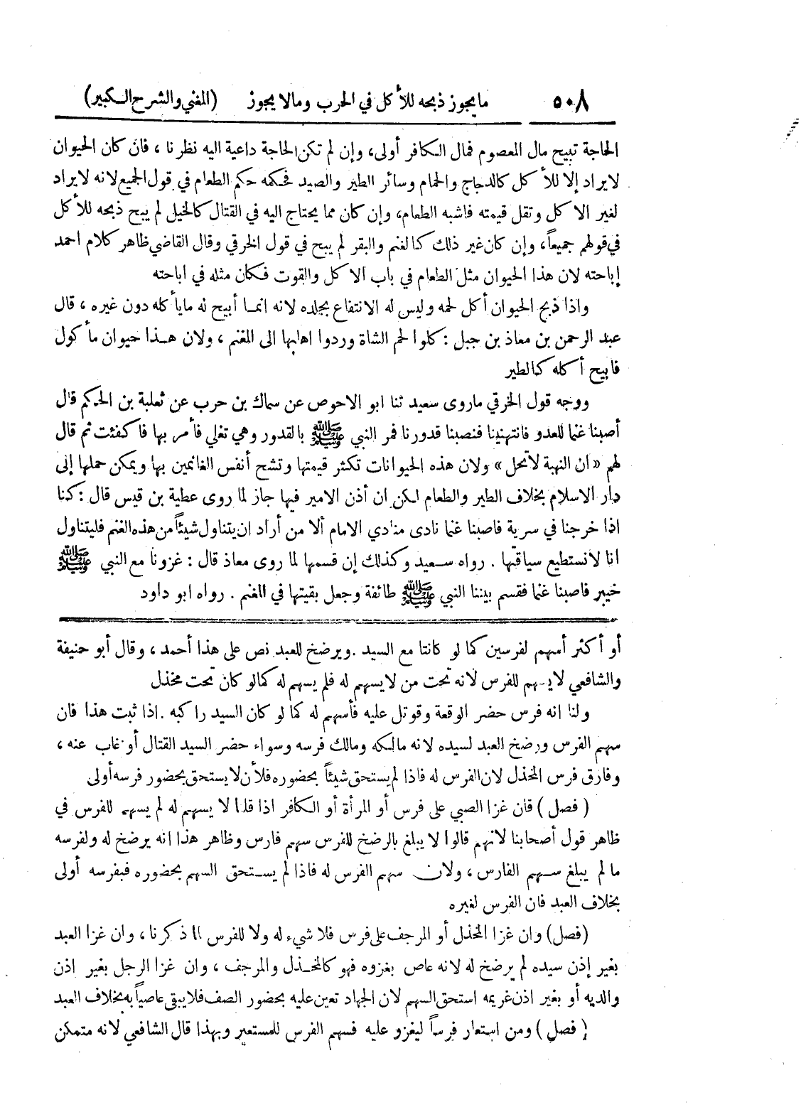 وفارق فرس المخذل لأن الفرس له فإذا لم يستحق شيئاً بحضوره فلأن لا يستحق بحضور فرسه أولى (فصل) فإن غزا الصبي على فرس أو المرأة أو الكافر إذا قلنا لا يسهم له لم يسهم للفرس في ظاهر قول أصحابنا لأنهم قالوا لا يبلغ بالرضخ للفرس سهم فارس وظاهر هذا أنه يرضخ له ولفرسه ما لم يبلغ سهم الفارس، ولأن سهم الفرس له فإذا لم يستحق السهم بحضوره فبفرسه أولى بخلاف العبد فإن الفرس لغيره (فصل) وإن غزا المخذل أو المرجف على فرس فلا شئ له ولا للفرس لما ذكرنا، وإن غزا العبد بغير إذن سيده لم يرضخ له لأنه عاص بغزوه فهو كالمخذل والمرجف، وإن غزا الرجل بغير إذن والدية أو بغير إذن غريمه استحق السهم لأن الجهاد تعين عليه بحضور الصف فلا يبقى عاصياً به بخلاف العبد (فصل) ومن استعار فرساً ليغزو عليه فسهم الفرس للمستعير وبهذا قال الشافعي لأنه متمكن